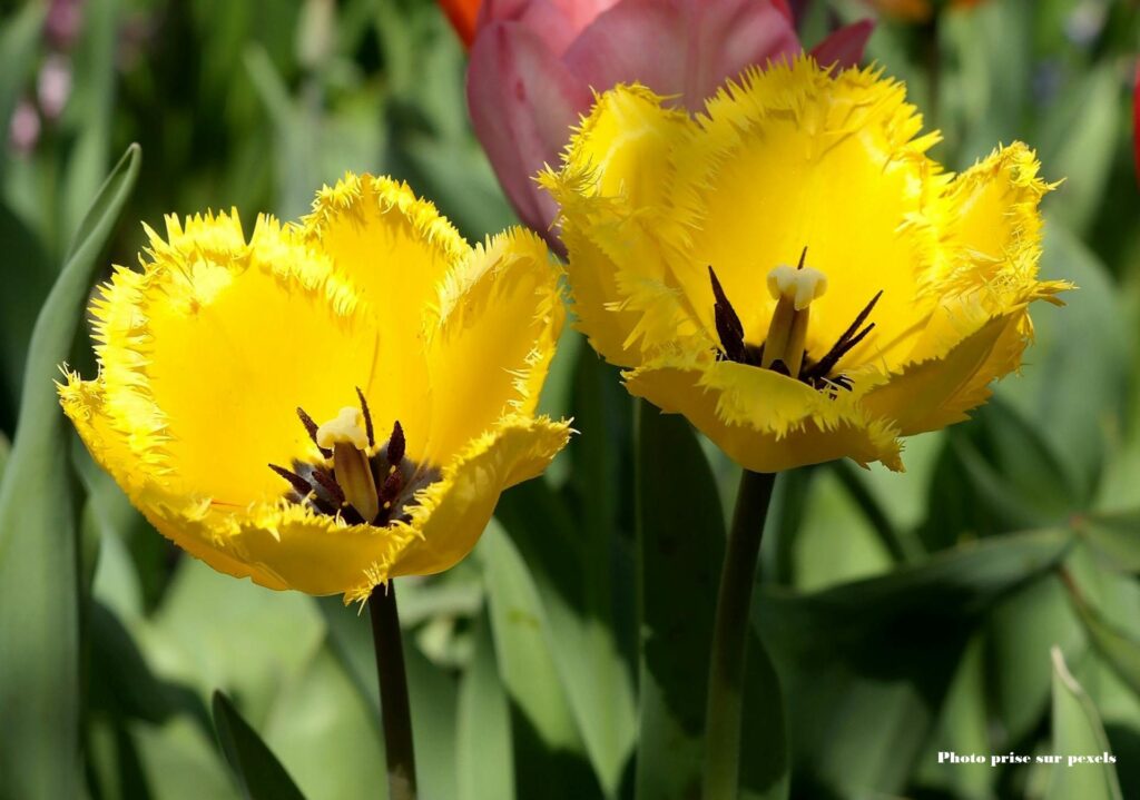Je connaissais la tulipe classique, mais pas la tulipe dentelée, aussi appelée tulipe frangée. Ses pétales délicatement ciselés lui donnent un petit côté froufrou que j’aime beaucoup. Alors, je me suis lancée dans ce nouveau challenge… une nouvelle variété vient d’entrer dans mon atelier !